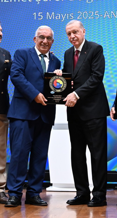 Türkiye Odalar ve Borsalar Birliği (TOBB) 2025 Yılı Hizmet Şeref Belgesi ve Plaket Takdim Töreni, TOBB Başkanı M. Rifat Hisarcıklıoğlu'nun ev sahipliğinde; Cumhurbaşkanı Recep Tayyip Erdoğan, Ticaret Bakanı Ömer Bolat, Adalet Bakanı Yılmaz Tunç ile Sanayi ve Teknoloji Bakanı Mehmet Fatih Kacır'ın katılımıyla TOBB İkiz Kuleler’de gerçekleştirildi. 2025 Yılı Hizmet Şeref Belgesi ve Plaket takdim törenine Borsamız Yönetim Kurulu Başkanı Sefer GÖÇER ve Meclis Başkanı Hüseyin AVCIOĞLU TUNALI katılım sağladı.
